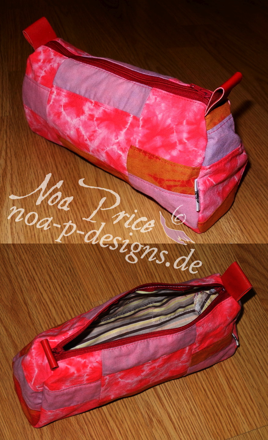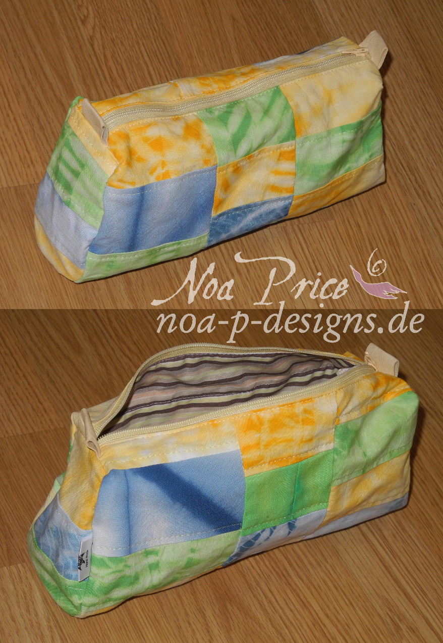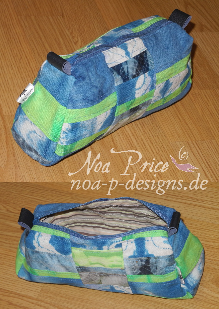 Small Dyed quilted lined bags with leather tips (22cm L x 7cm W x 11cm H)